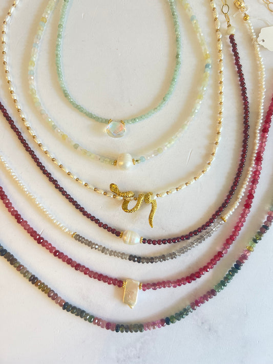 Collares hechos a mano exclusivos de cantik, diseños únicos generalmente son una sola pieza de cada uno. El material que usamos es oro laminado, piedras naturales y semipreciosas.